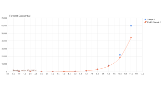 Demonstrates the use of TrendLineExponential from within ForecatEngine which find the best fitting exponential curve to sets of data.