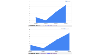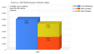 Shows total sales and number of orders from the sample database bound to different axis and also shows how the same chart would appear if bound to the same axis.