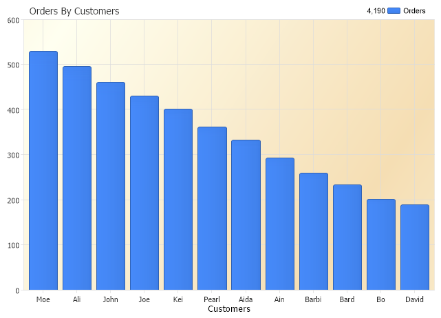 Chart.Series.SqlStatement= "SELECT Name,Sum(1) FROM Orders GROUP BY Name ORDER BY Sum(1) DESC"