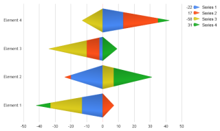 Demonstrates stacked pyramids with negative values in ComboHorizontal.