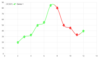 Demonstrates how to mark resulting calculated elements with colors of the original series.