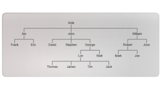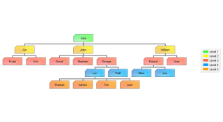 Demonstrates a manually populated organization chart where the last level is listed vertically due to image size constraints.