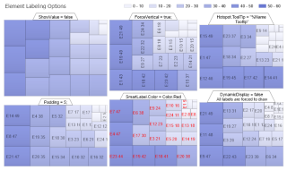 Demonstrates how to draw a simple TreeMap chart with color ranges using a SmartPalette.