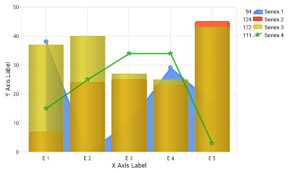 // Set 2 series to bars and 2 to lines.