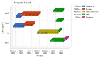 Demonstrates creating a Gantt chart dynamically from a database using a data/time axis.