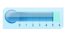 Demonstrates a horizontal linear gauge using shading effect one, an axis marker and element marker range tick.