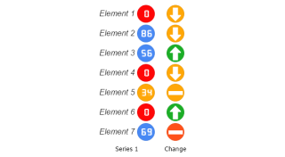 Demonstrates gauge indicator lights using values above and below 0 to indicate status.