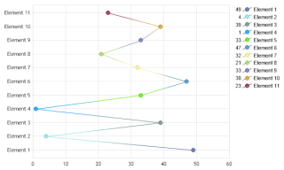 Demonstrates a dumbbell slider chart with styled lines that encompass element markers. Uses firstPoint and lastPoint to manage styling.
