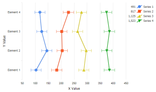 Demonstrates error bars on lines in a horizontal chart.