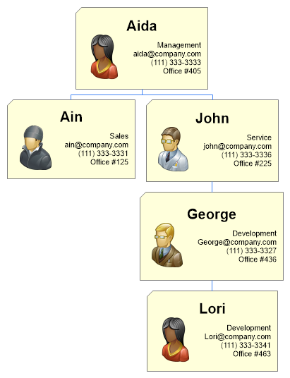 // Demonstrates usage of an organizational chart using custom attributes populated from an existing user table by adding instance and parent IDs to establish the org hierarchy.