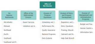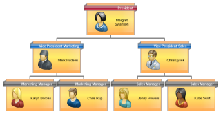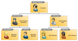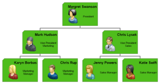 Demonstrates an organizational chart with vertical layout of elements due to space constraints.