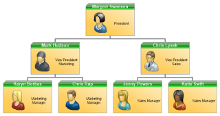 Demonstrates an organizational chart with vertical leaf point layout and images in nodes.