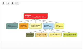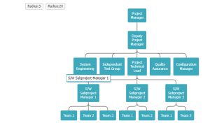 Demonstrates an organizational chart with interactive node level highlighting and selection.