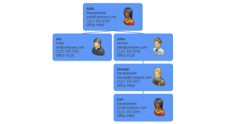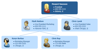 Demonstrates an organizational chart using annotations with headers and Ribbon caps.