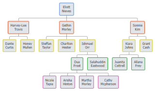 Demonstrates an organizational chart with vertical layout and styling of leaf nodes.