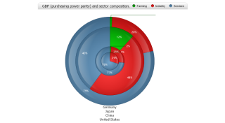 Demonstrates using a stacked pie ring to indicate which pie elements belong to which series or group.