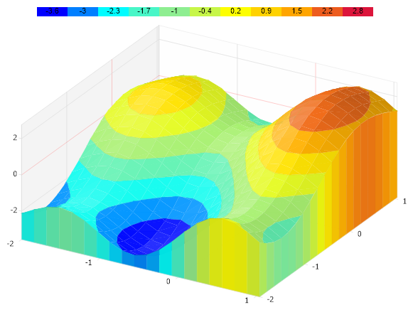 // Demonstrates a 3D contour surface chart with DrawToFloor.
