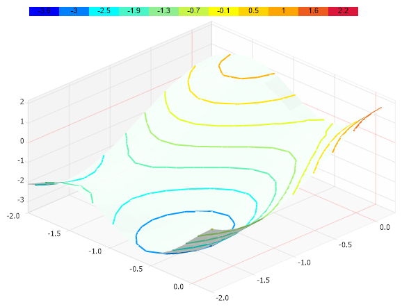 // Demonstrates a 3D contour surface chart with a solid contour fill.