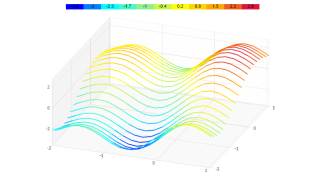 Demonstrates a 3D contour surface chart with solid contour lines.