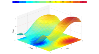 Demonstrates a 3D surfaceX chart with DrawToFloor.